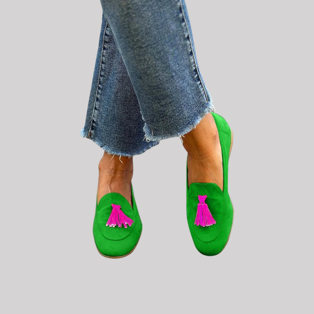 Vibrant Loafers for Women with Fuchsia Tassels | Unique Green Footwear for Bold Style